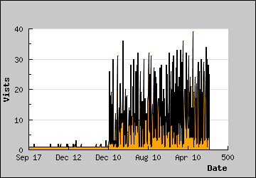 Here we see the number of visitors sent to the comic each day, the little blue dots mark days when the comic updated.