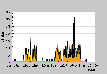 Here we see the number of visitors sent to the comic each day, the little blue dots mark days when the comic updated.