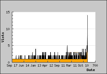 Here we see the number of visitors sent to the comic each day, the little blue dots mark days when the comic updated.