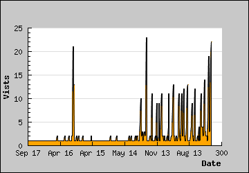 Here we see the number of visitors sent to the comic each day, the little blue dots mark days when the comic updated.