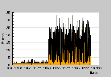 Here we see the number of visitors sent to the comic each day, the little blue dots mark days when the comic updated.